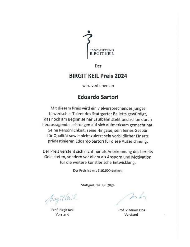 Die feierliche Verleihung des Birgit Keil Preises findet am 12. Juli 2022 im Anschluss an eine Sondervorstellung von John Crankos Onegin zur Verabschiedung von Alicia Amatriain auf der Bühne des Opernhauses statt. Sie selbst wird nicht Tatjana, eine ihrer Paraderollen, tanzen, aber sich zum letzten Mal vor Publikum verbeugen.